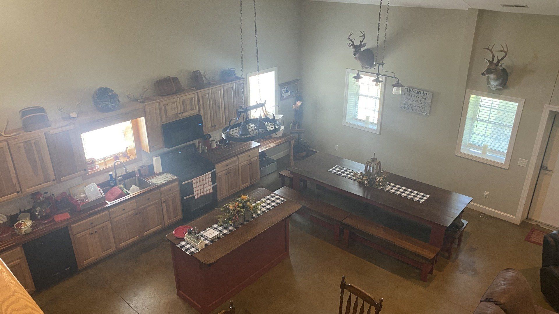 Enjoy our 5-star lodge in Menola, North Carolina. Built in 2015, our lodge is 2700 sq ft and has all the amenities of being at home. It has five bedrooms, three baths, and a large living room and kitchen. Hunters can enjoy the stocked fishing pond or sitting on the covered porches by the fire pit in the evening. You can also find your favorite team playing football on our 60-inch TV. You will not go home hungry. The Menola hunting lodge has some of the best southern cooking you have ever tried. This lodge can accommodate up to 15 hunters.